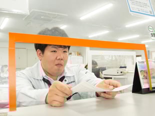 レンタル機を借りに来られるお客様の窓口対応(フロント業務)です。お客様からの電話応対が主な仕事で、レンタルの問い合わせに対して、パソコンで管理しているレンタル機の在庫を確認しながら、注文をいただいた建設機械を正確に手配します。必要なときは、他営業所と連携して建設機械を用意することも。お客様が来られると、前日までに作成した出荷伝票にサインしていただき、機械の受け取り口の案内をします。